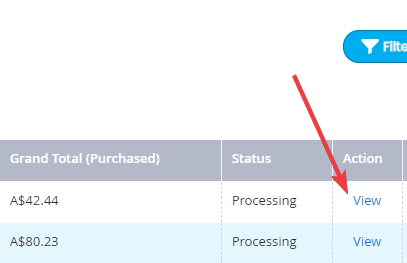 - Select the Order you wish to ship (you can use the View from the Action column, or you can simply click on the order itself and it will take you to the Order Detail page)