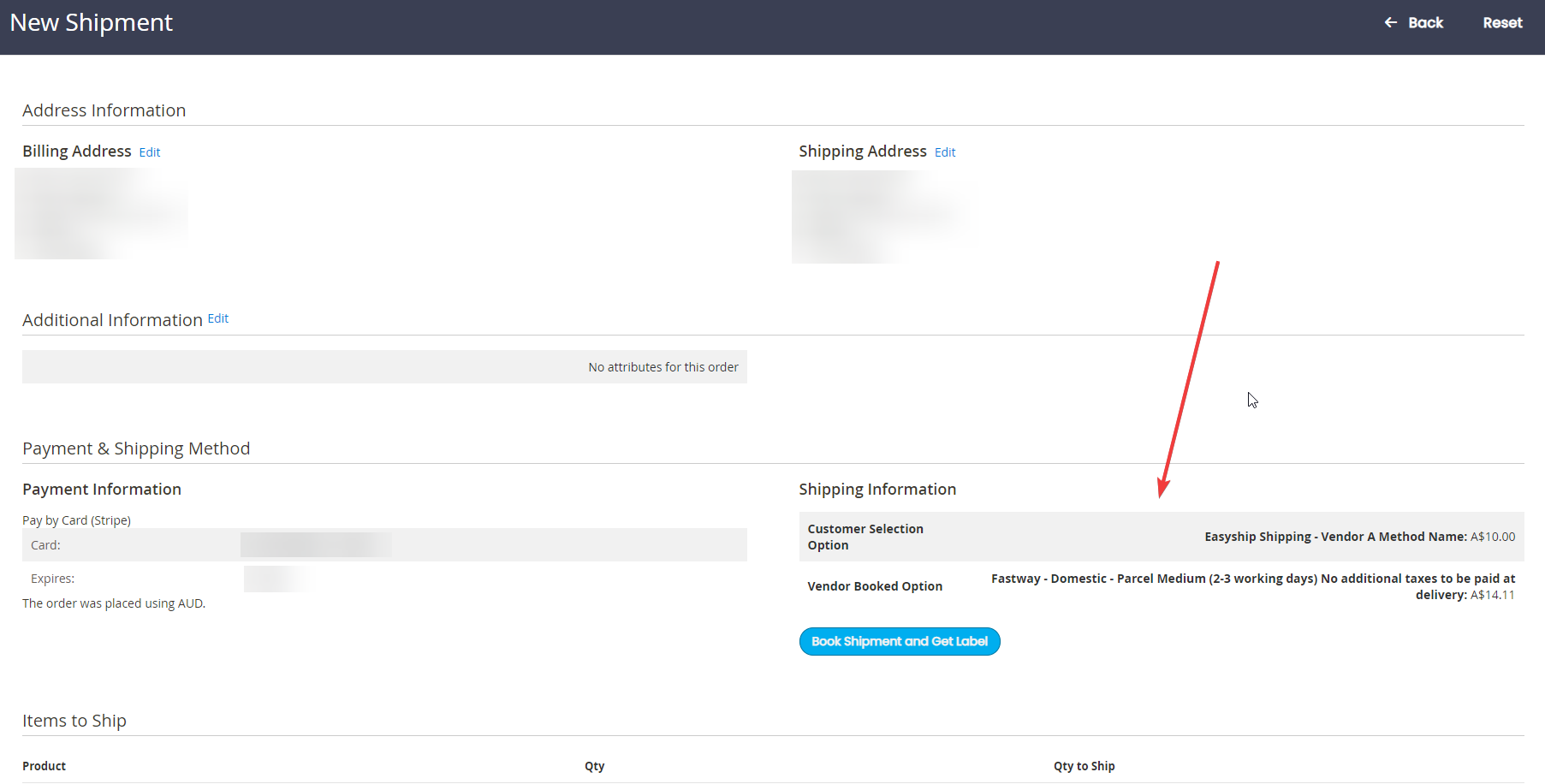 You will also see that now the button for "Book Shipment and Get Label" has changed to the following