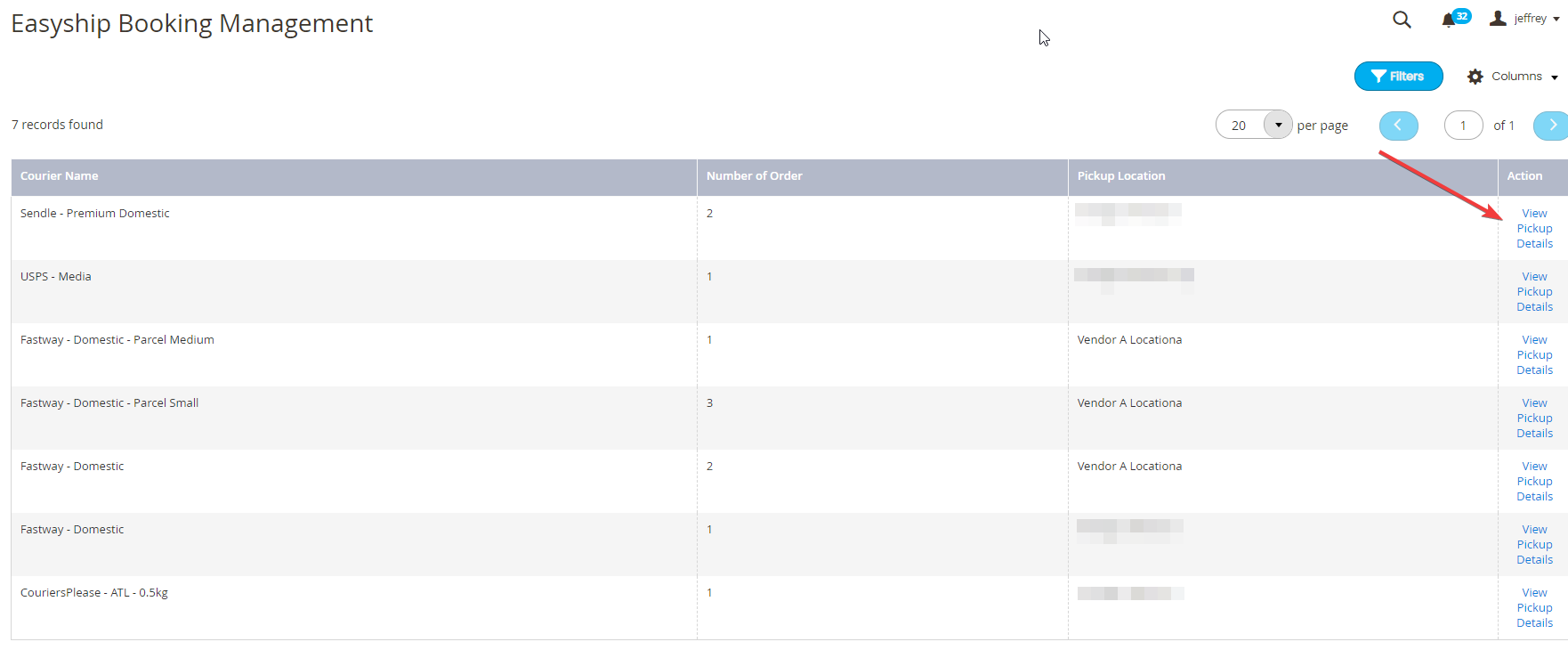 - Here you will see a list of couriers with orders already set in the Easyship Account. Select the courier you would like to organise the bookings for by selecting "View Pickup Details" on the right column.