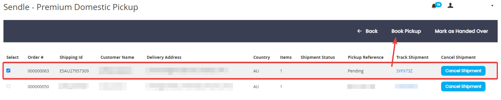 - Once you access the pick up detail page - you can select multiple orders for the same courier, and book them all at once! In this example, the highlighted order here is ready to ship.