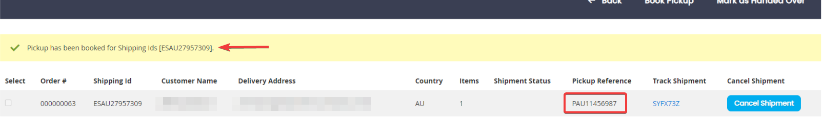 You will also notice that you have a Pickup Reference. This is generated and also stored in Easyship.
