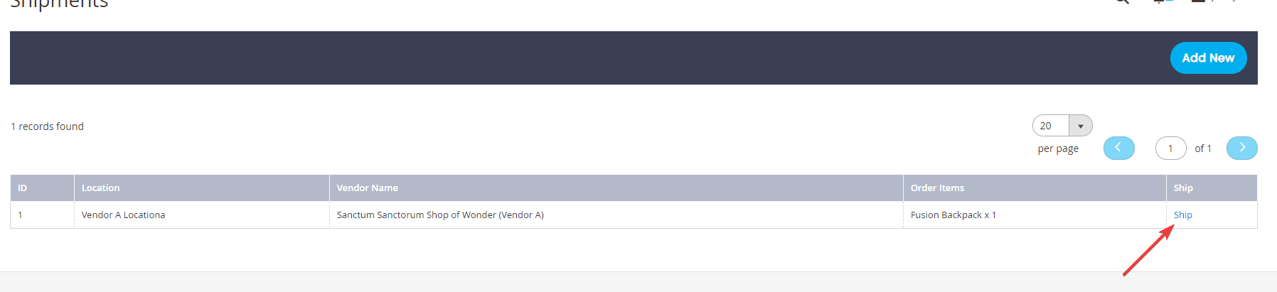 - Once the page loads, click on the link Ship from the right column to take you back into the shipment view for that location.