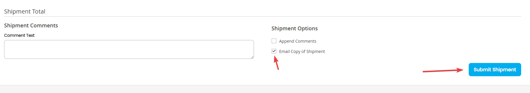 - Scroll down to the bottom, and tick the Email copy of Shipment in the Shipment Options. Then simply select Submit Shipment.