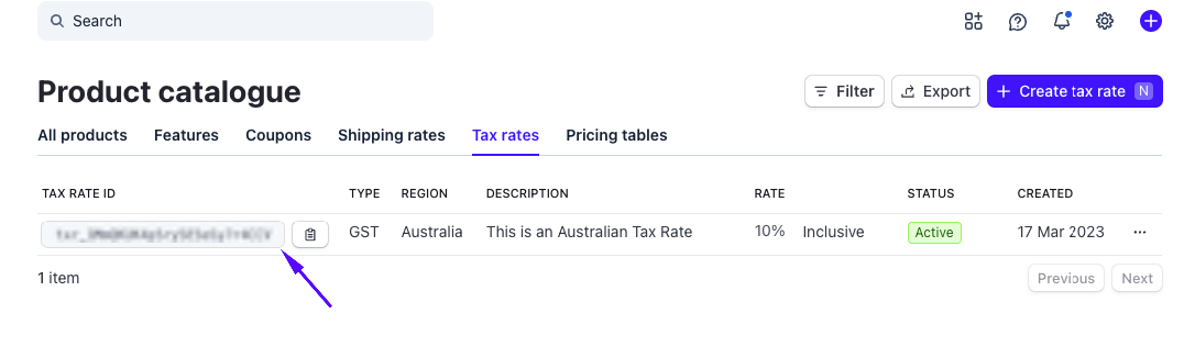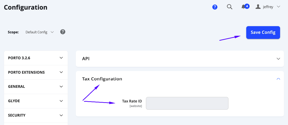 Open the Tax Configuration tab, and paste the Tax Rate ID in the field below.