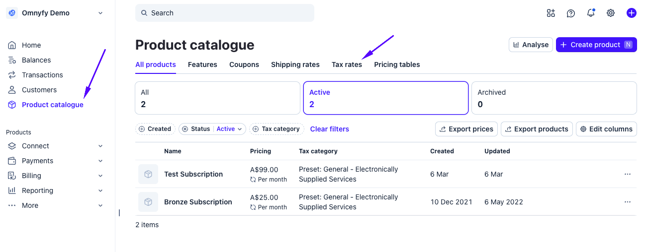 By default, Tax is not added to the Stripe Subscription Products. To add a Tax Rate, you will first need to obtain the Tax Rate ID for the subscription plan you would like to add to, then select.