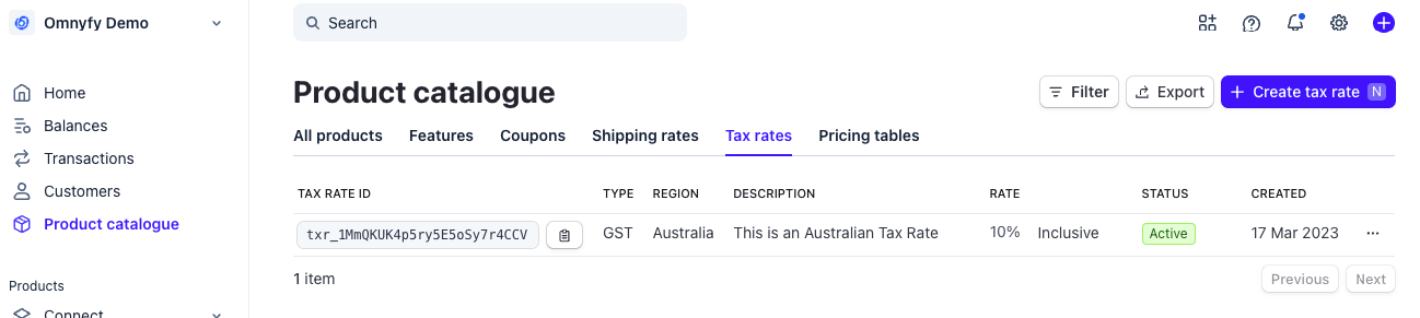 Select Add tax rate at the bottom right of the pop up to create the tax rate.