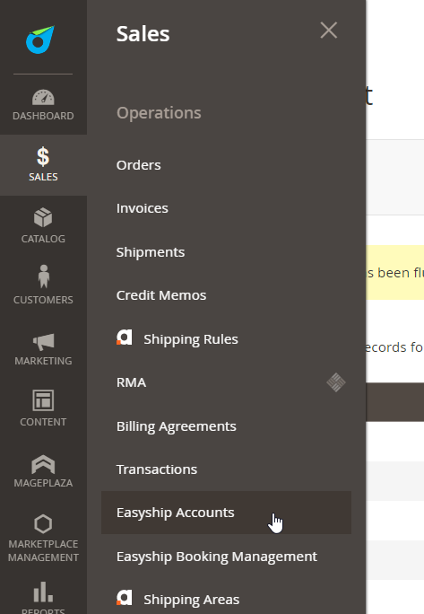 Generally, you would set up an account for the Marketplace Owner so that you can import the Shipping Categories, so for now save it. Once saved, ensure you clear your cache and reindex, in order to see Easyship Accounts and Easyship Booking Management in the Sales Menu.