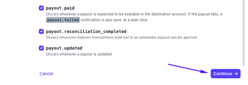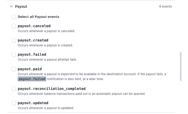 NOTE: You can scroll down in the All Events tab to search for the Payout dropdown and choose Select all Payout events.