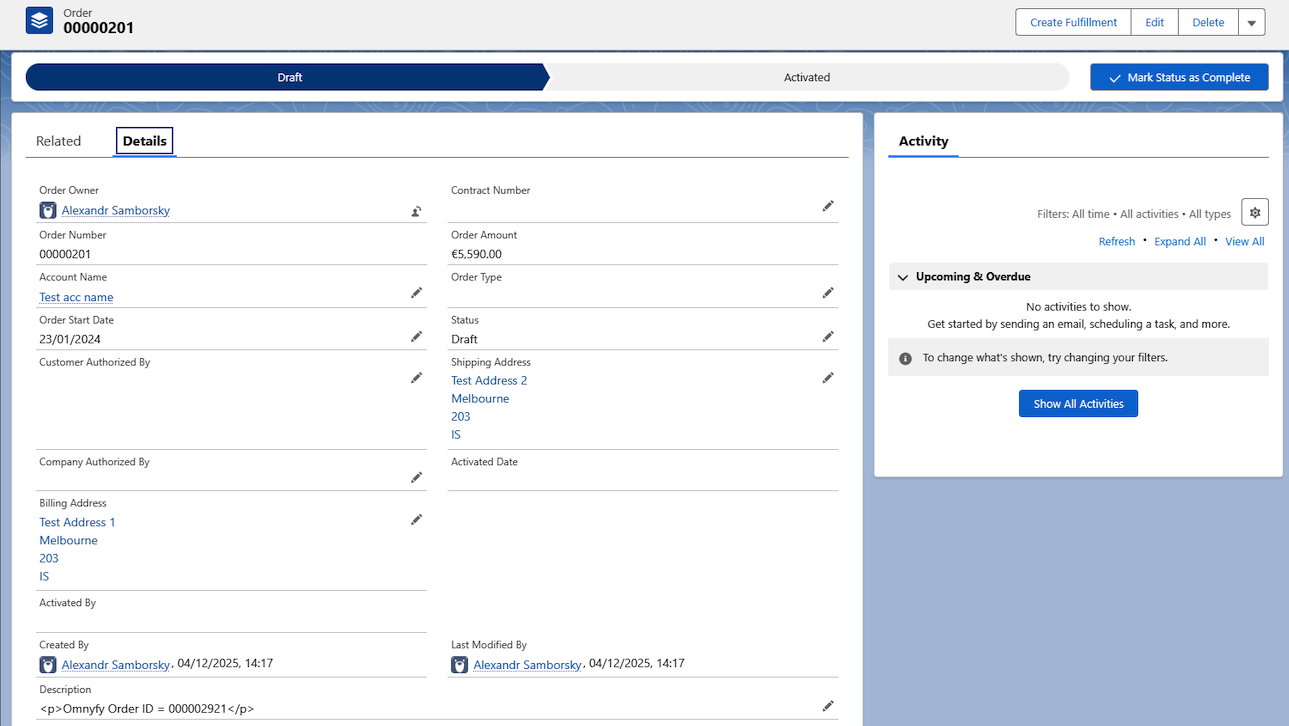 Reminder that there is currently no fulfilment integration with the Marketplace and Salesforce. To fulfil this order, actions need to be updated in Salesforce separately, whilst also updating the Marketplace Admin Portal to update the shipping steps.