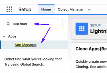 You will be taken to the Setup Home, and on the left, you can search for App Manager.