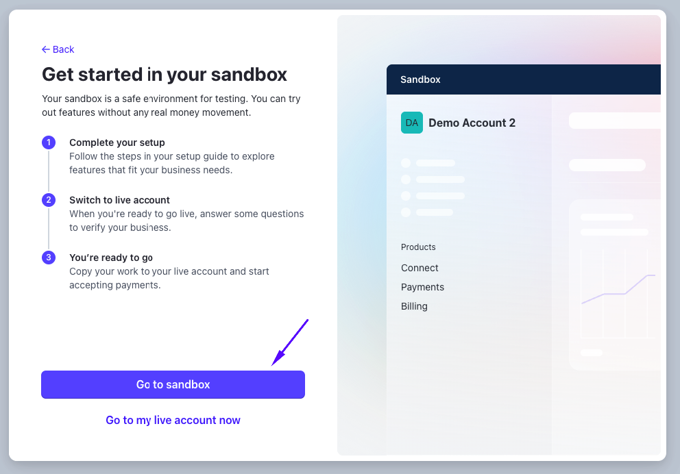 When the next pop up appears, you can continue to configure either the Sandbox or the Live Account.