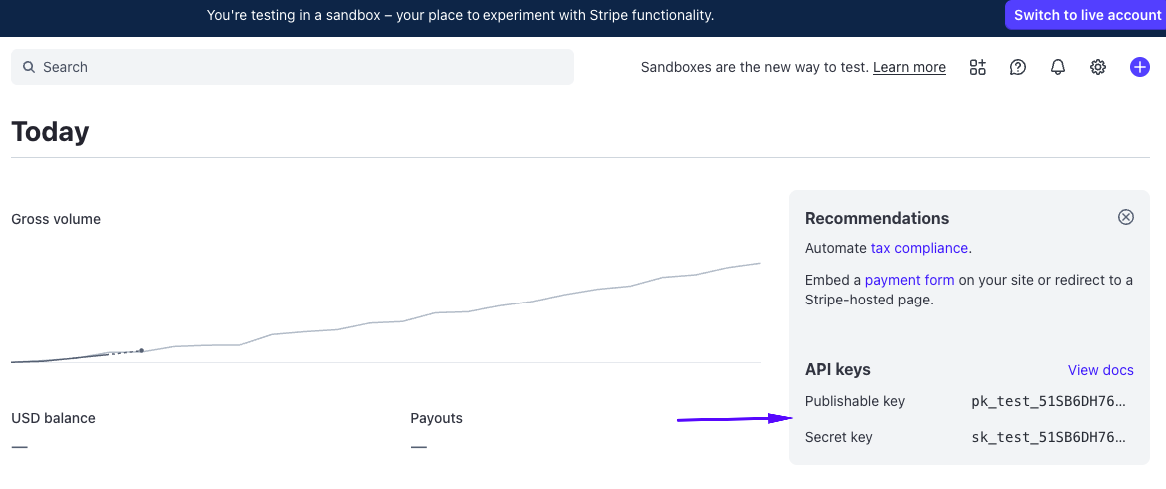 If you have just started with the Sandbox Account, you can navigate to the right side and see the Recommendations to easily access API Keys.
